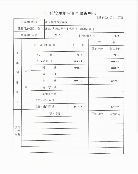 衡東-大浦天然氣支線管道工程建設項目呈報材料“一書四方案”