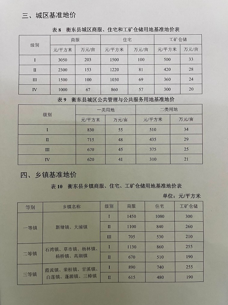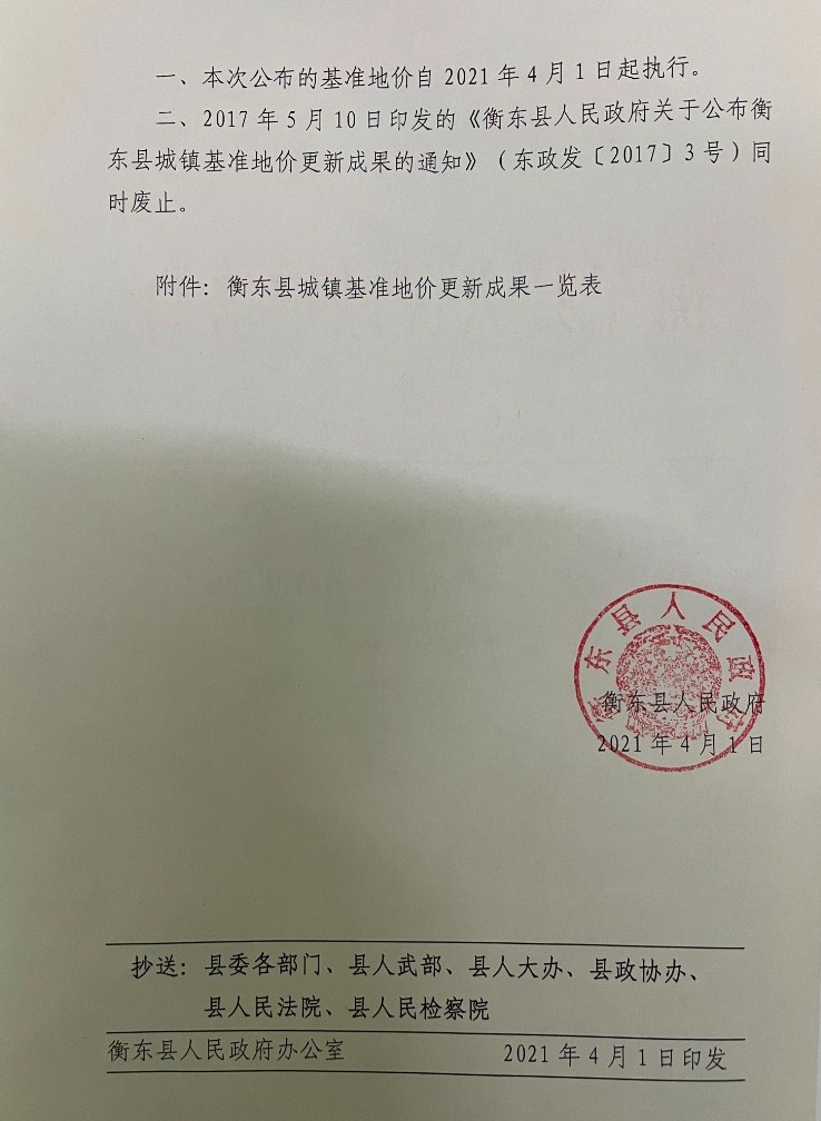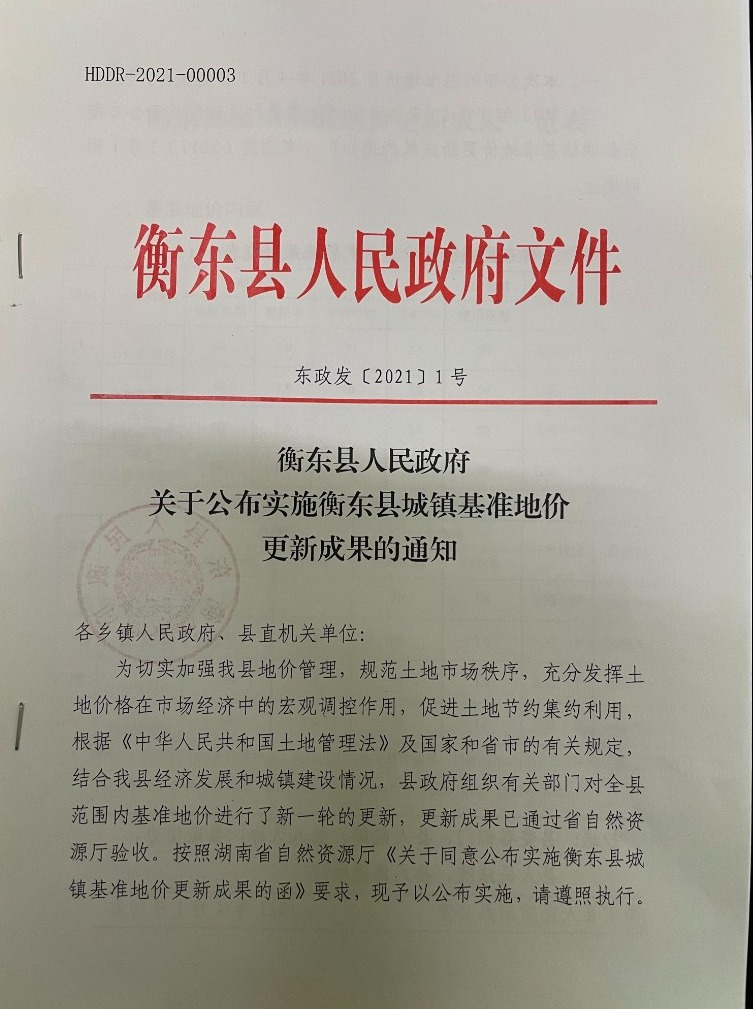 衡東縣人民政府關于公布實施衡東縣城鎮基準地價更新成果的通知