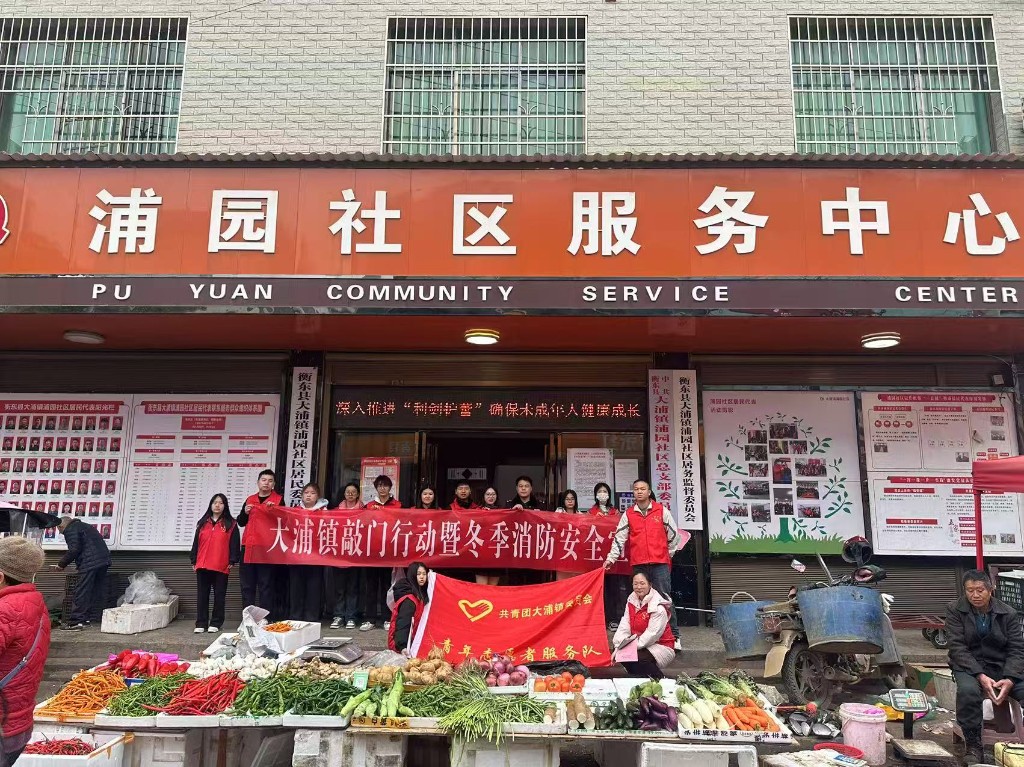 2025年1月23日上午大浦鎮團委、婦聯、司法所、應急辦、宣傳等部門聯合返鄉大學生志愿者在浦園社區開展宣傳活動。
