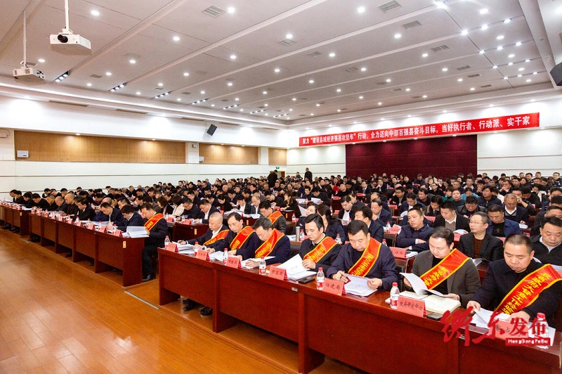 會上,縣委常委、常務副縣長劉知生宣讀了全縣2023年獲得國家、省、市榮譽的表彰通報、2023年政府部分重點工作考核情況通報,并部署2024年部分重點工作;會議對獲得省政府真抓實干督查激勵表彰和大督查通報表彰單位、市高質量發展爭先創優考核優秀單位進行了頒獎;縣政府工作部門、相關縣直部門負責人上臺遞交部分重點工作承諾書、安全生產和消防工作責任狀;縣教育局、縣科工信局、縣自然資源局等6個單位代表圍繞爭先創優、財源建設、招商引資等主題進行了交流發言;縣委常委、縣紀委書記、縣監委主任肖明旭作廉政講話。