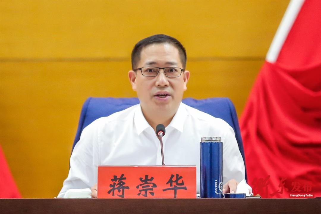 圖:縣委副書記、縣長蔣崇華出席會議并講話