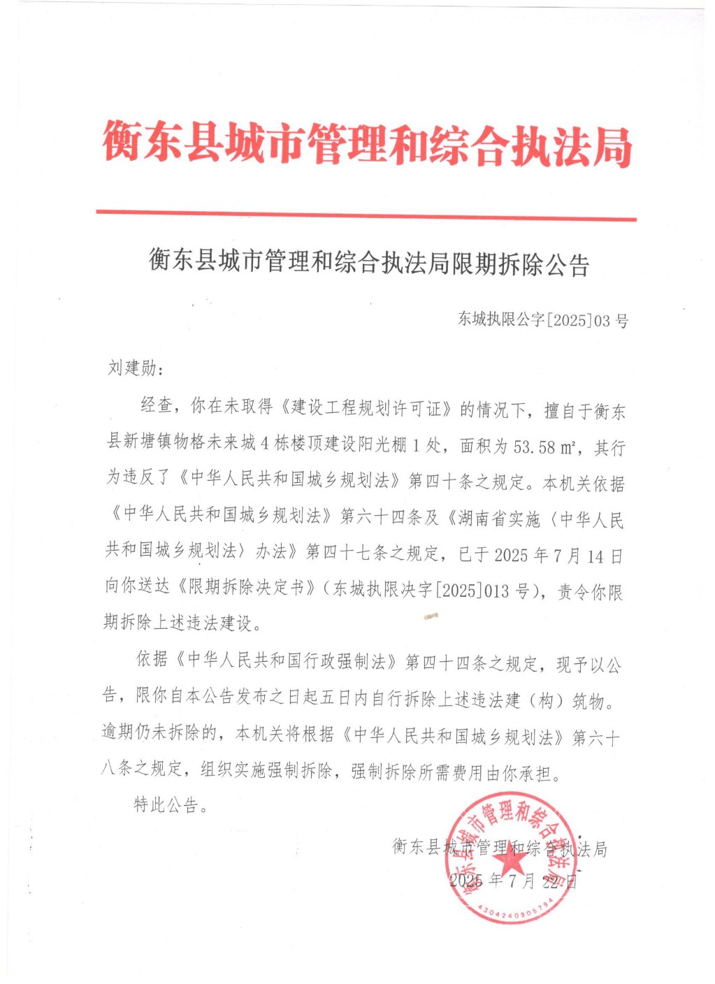 限期拆除公告