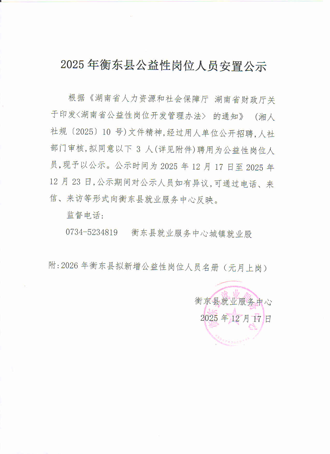 附件:2026年衡東縣擬新增公益性崗位人員名冊(元月上崗)