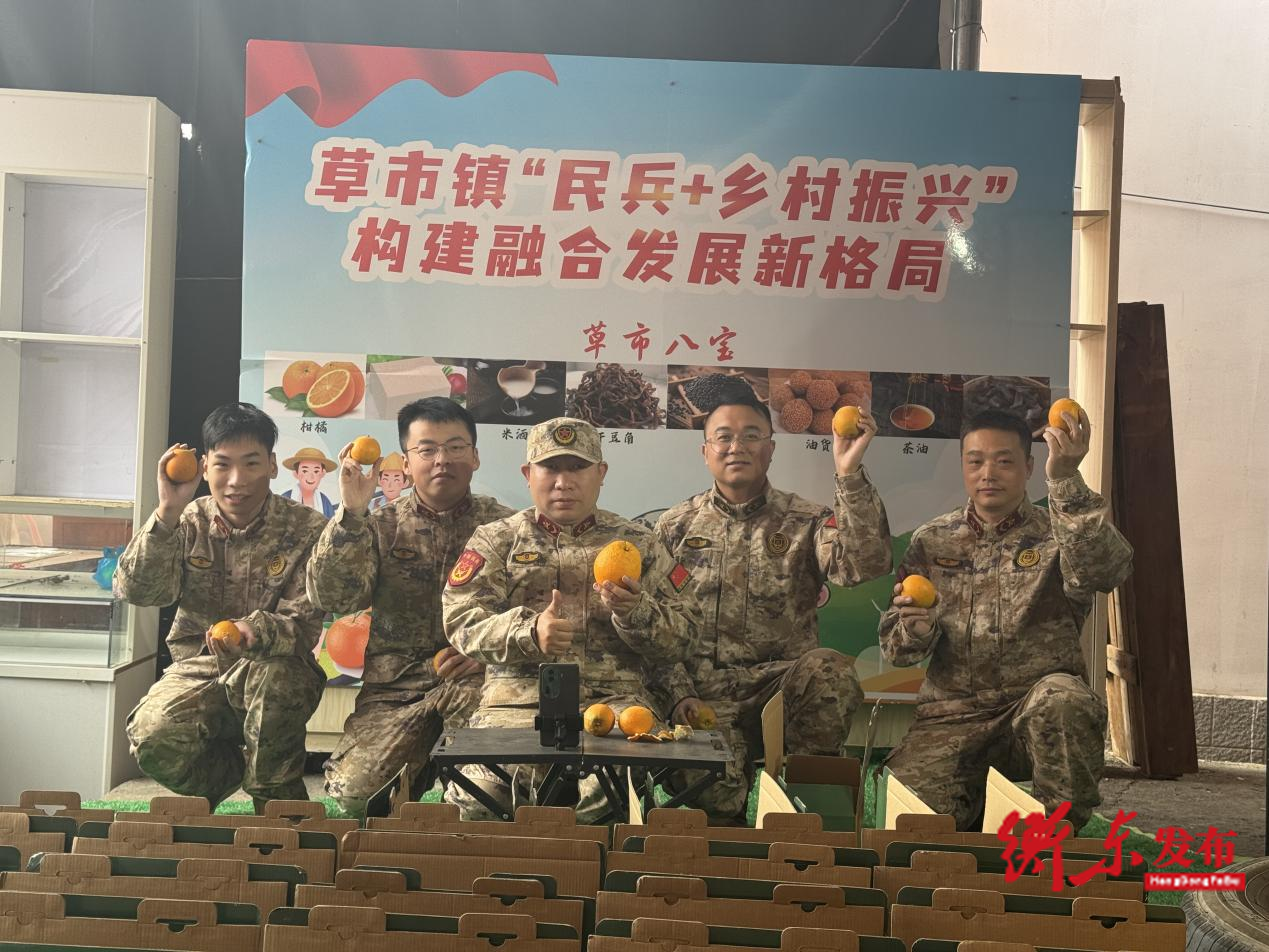 近日,正值柑橘成熟采摘旺季,為幫助農戶解決產量高銷售難的問題,草市鎮打造“一部一站一特色”“民兵+鄉村振興”模式,迅速組建民兵銷售小分隊,走進田間果園搭建直播陣地,以線上帶貨形式助力橘農拓寬銷路,讓清甜貢橘遠銷各地,繪就軍民同心助農增收的生動畫卷。