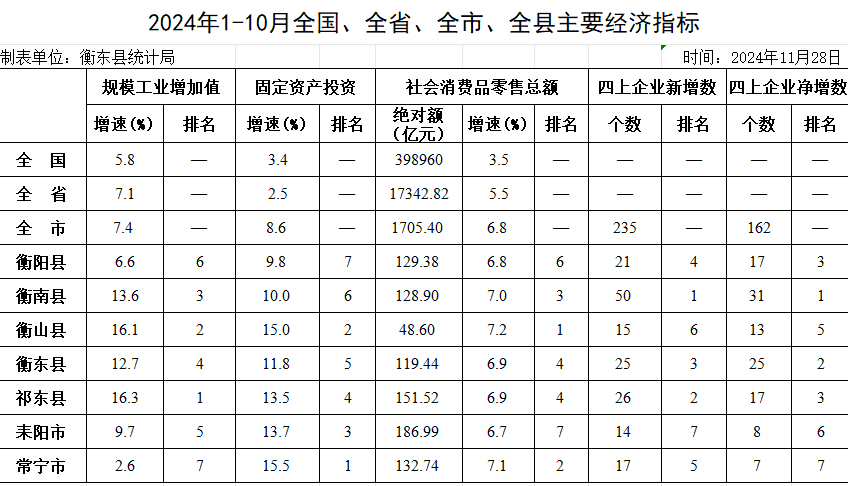 2024年1-10月主要經(jīng)濟(jì)指標(biāo)